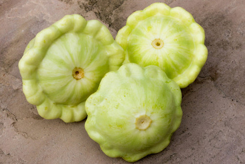 Benning's Green Tint is an open pollinated heirloom scalloped squash producing high yields of pale green, saucer-shaped fruit. The bush-type plants are compact and productive, offering flavorful squash with a creamy texture. A classic patty pan variety known for its quality and charm.