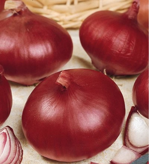 Red Burgundy Onion is a classic red variety producing 3 to 4 inch bulbs with soft white flesh and distinctive red rings. Known for its mild, sweet flavor, it adds color and taste to a wide range of dishes. Bulbs can also be picked young for bunching. A reliable choice for fresh eating and home gardens.